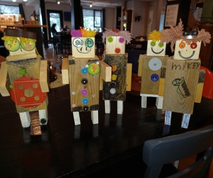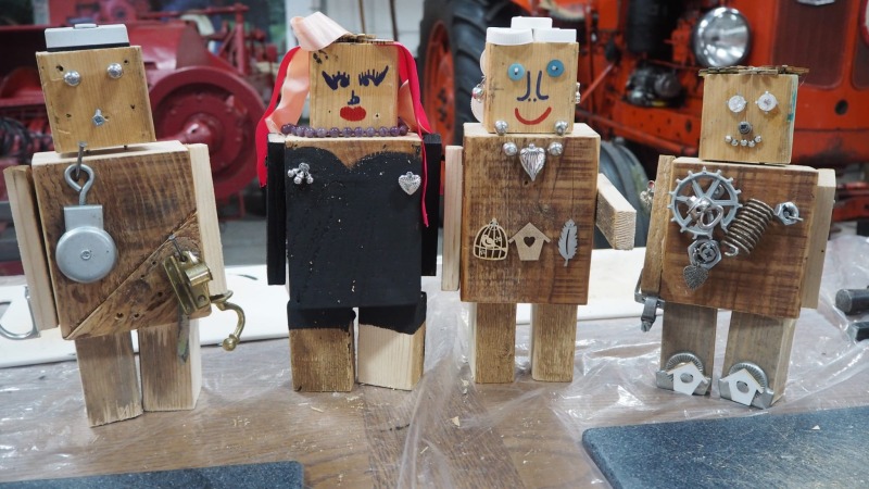 Op dinsdag, woensdag, donderdag en vrijdag is er voor de kids een workshop robot timmeren in onze werkplaats. Met resthout, spijkers, schroeven en bouten timmer je eerst een robot in elkaar. Daarna zoek je in de bakken naar leuke, stoere of kleurige materialen om je robot zo mooi mogelijk te maken.