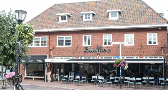 Het restaurant zit in de voormalige kruidenierswinkel van de ouders van Kim van der Worp, de eigenaar van zowel Buuffies als de Albert Heijn. Lees het interview met Kim van der Worp: